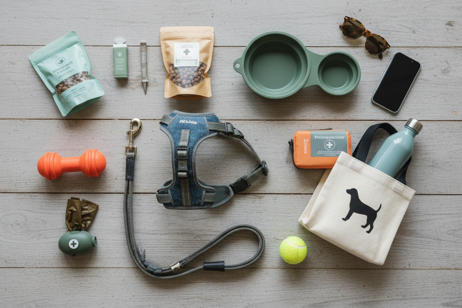 - Pack a dog day-bag with fresh water, a collapsible bowl, poop bags, lead, a small towel, and a few treats